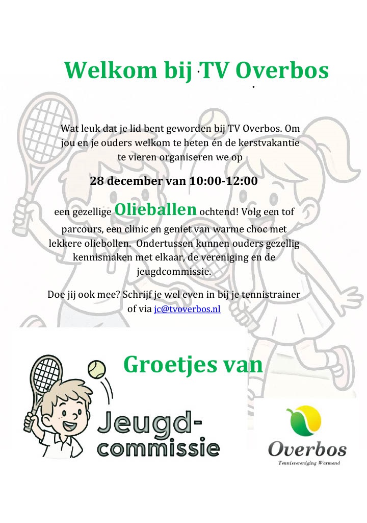 Volg een tof parcours, een clinic en geniet van de warme chocolade melk met lekkere oliebollen. Ondertussen kunnen ouders gezellig kennismaken met elkaar, de vereniging en de jeugdcommissie.